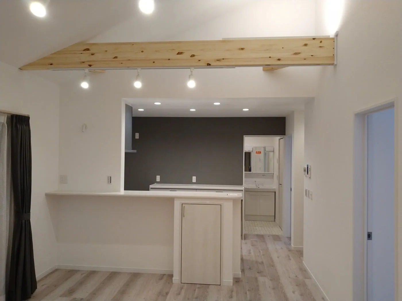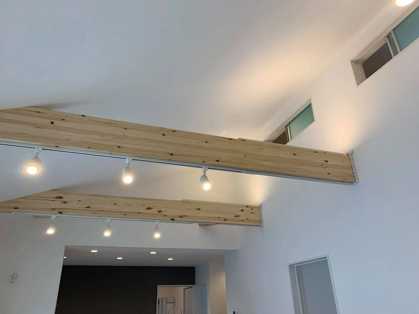 開放感が気持ちいい、天井が高く、天然無垢材の梁が自慢です。